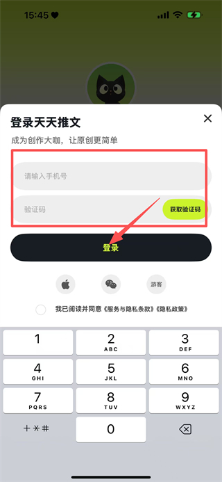 4、在手机号登录界面,填写手机号并获取验证码后点击登录。