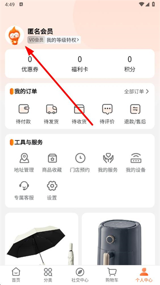 1、进入壹品慧app后,找到底部的个人中心选项并点击,可进入个人页面。