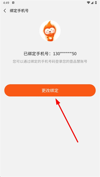4、在绑定手机号页面,点击更改绑定按钮,按照提示完成手机号更改操作即可。