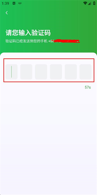 3、在输入短信验证码页面填写收到的验证码,完成账号的登录操作。
