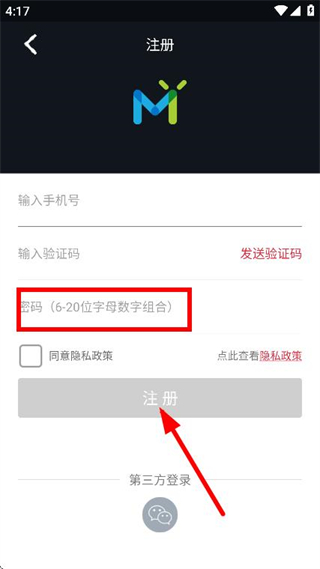 3、设置密码,点击注册按钮,即可完成注册操作。