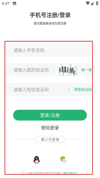 3、在登录页面,填写信息并勾选协议后,点击按钮即可完成账号登录。