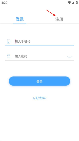 1、打开好出行应用,进入登录页面后点击右上角注册选项,切换至注册界面。