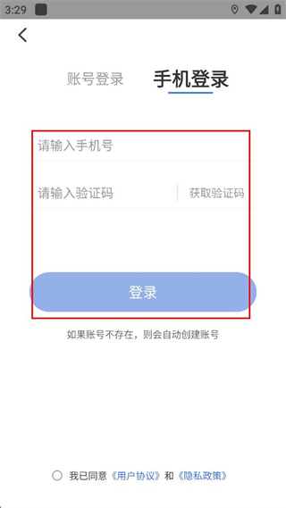 4、在手机登录页面填写对应的手机号和验证码,后续可点击登录完成操作。