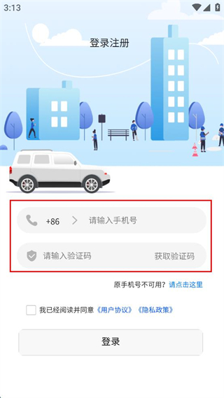 2、进入登录注册页面,找到手机号输入框填写号码,再填写对应的验证码。