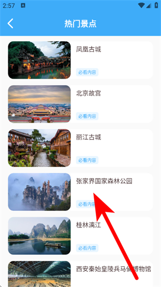 3、在热门景点列表中,点击选择目标景点,进入详情页面。
