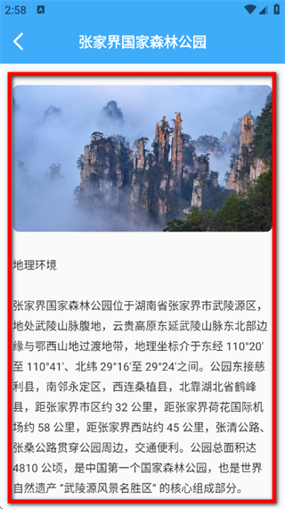 4、在景点的详情页面,可查看景点的地理环境、介绍等信息。
