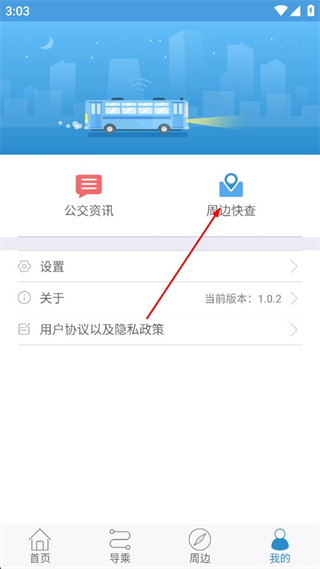 2、在个人页面中,找到周边快查选项并点击,跳转至周边快查的功能页面。