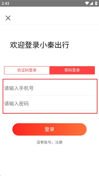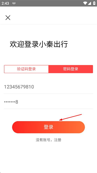 3、在登录界面选择密码登录,输入手机号和对应的密码,填写相关信息。