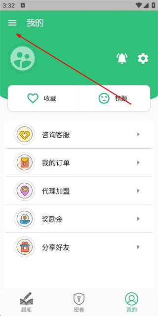 1、在胸心外科学题库页面点击底部我的选项,进入个人中心页面。