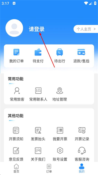 2、在我的页面,点击请登录按钮,进入登录页面。