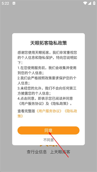 1、阅读用户服务协议和隐私政策后,点击同意按钮。