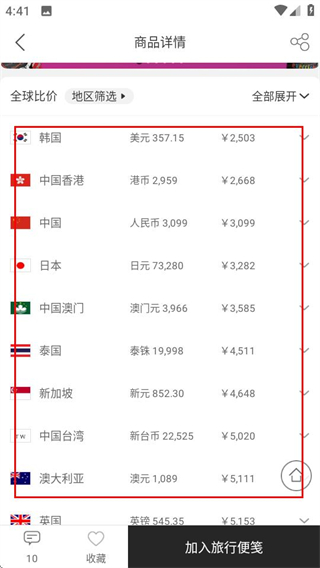 4、在商品详情页面,可查看该商品在不同地区的价格对比信息。