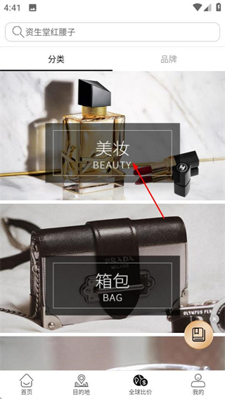 1、进入首页后,点击底部的全球比价选项,可进入分类页面。