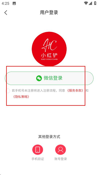 3、在登录页面,勾选协议后点击微信登录选项,即可通过微信完成账号登录。