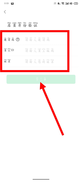 4、在店员身份验证页面,输入邀请码和姓名等信息,完成身份验证操作。