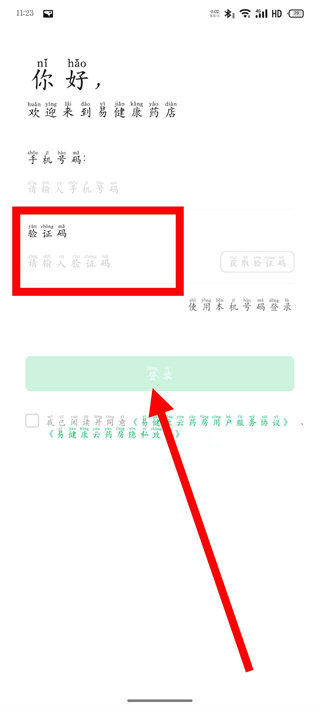 1、在易健康云药房登录页面,输入营业执照号,点击获取验证码。