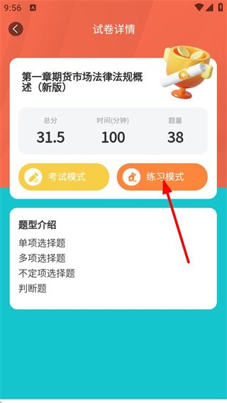 4、在试卷详情页面,点击练习模式选项,可进入对应章节的题目练习页面。
