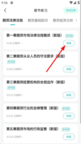 3、在章节练习页面,点击目标章节旁的做题按钮,可进入试卷详情页面。