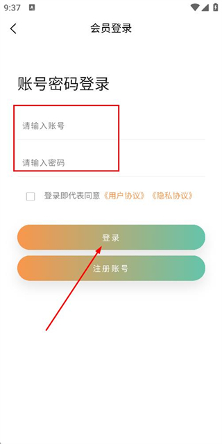 3、在登录页面填写账号和密码,勾选协议后,点击登录完成账号登录操作。