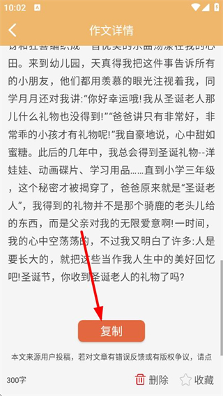 4、在作文详情页面,点击复制按钮,即可复制该作文的内容。