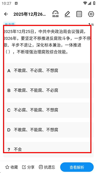 3、在题目练习页面,即可开始作答对应的时政练习题。