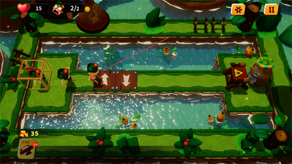 3、角色移动后消耗金币,沿水道路径前进,避开障碍,向目标区域推进。