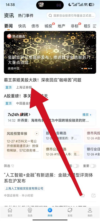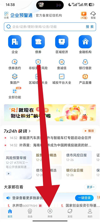 1、打开企业预警通,点击底部导航栏的舆情,进入舆情内容页面。