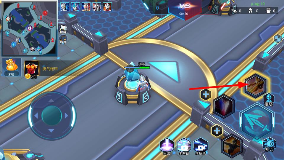 2、点击补刀按键,可对敌方小兵进行最后一击,获取额外金币和经验,提升等级和经济优势。