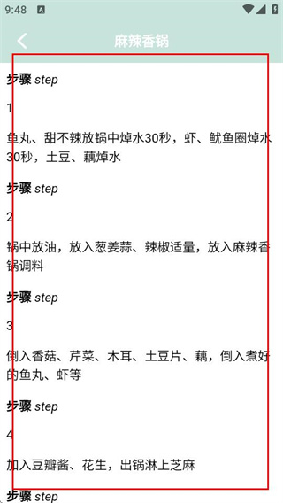3、在菜谱详情页面,可查看看麻辣香锅的具体制作步骤。