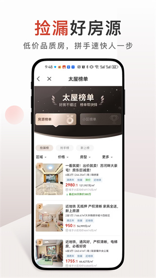 依据市场数据与性价比模型,定期推出精选捡漏房源榜单,帮助用户从海量信息中快速锁定高潜力好房与优惠机会,让优质房源不再因信息过载而被错过。