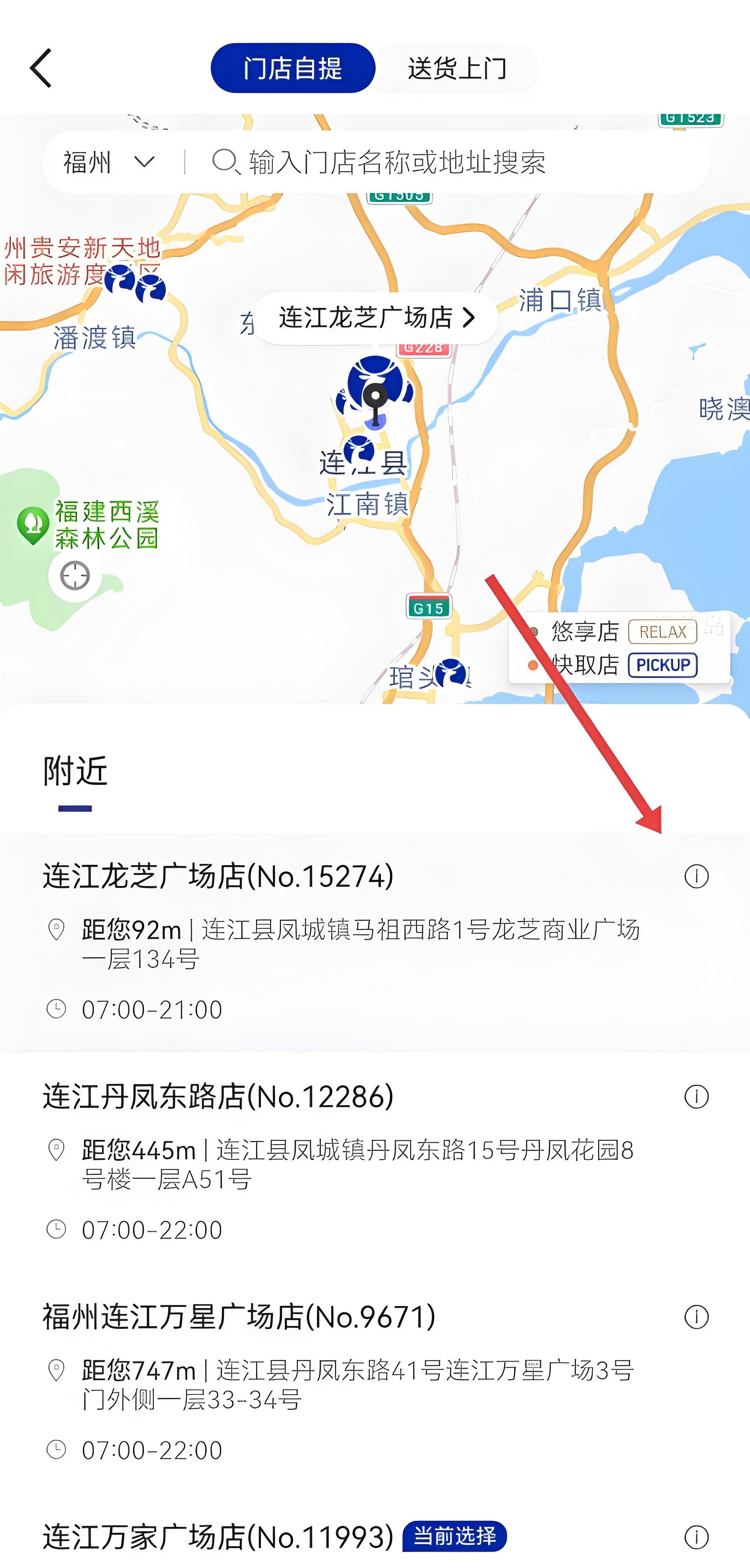 1、打开瑞幸咖啡APP,进入门店服务页面,在附近门店列表中选择目标门店,点击进入该门店详情页。