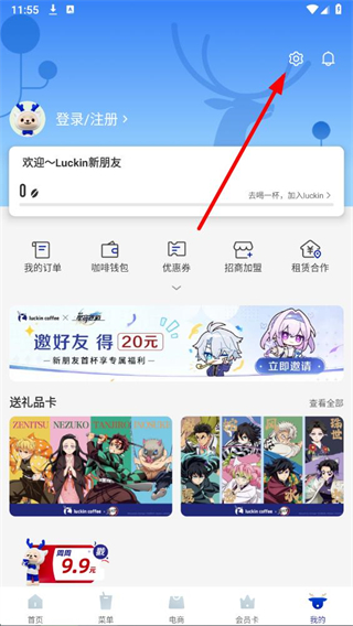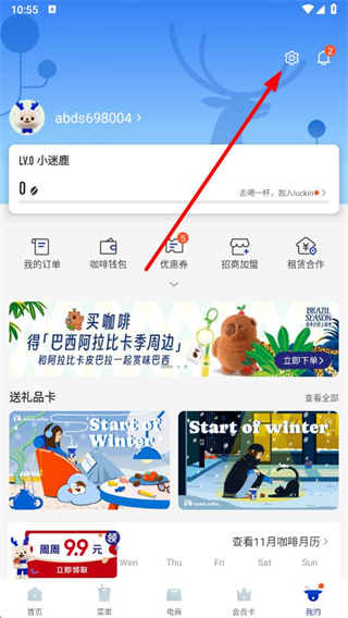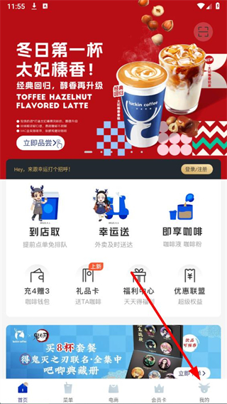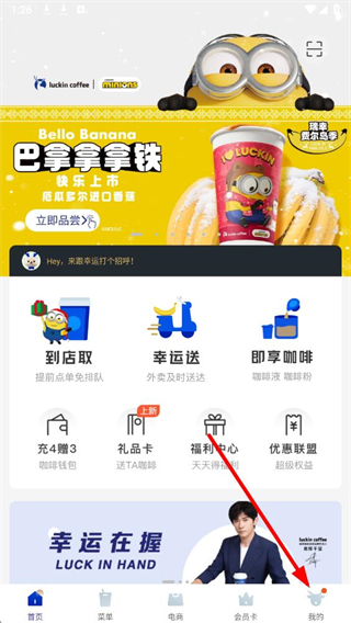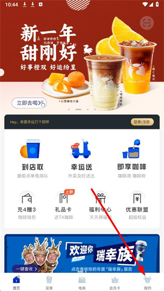 1、在瑞幸咖啡首页,点击右下角我的,进入个人页面。