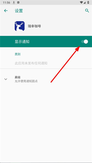4、在通知设置界面,将显示通知的开关关闭,即可完成推送通知的关闭操作。