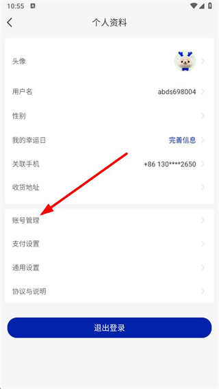 3、在个人资料页面,找到账号管理选项并点击,进入账号管理的操作界面。