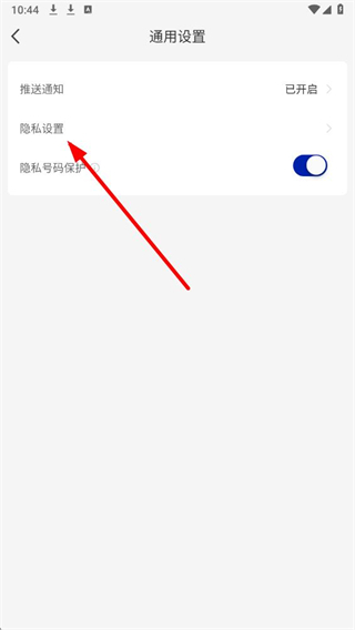 3、在通用设置页面,选择隐私设置选项,进入隐私权限管理界面。