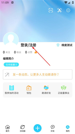 3、随后在个人页面,点击登录/注册按钮,即可进入登录页面。
