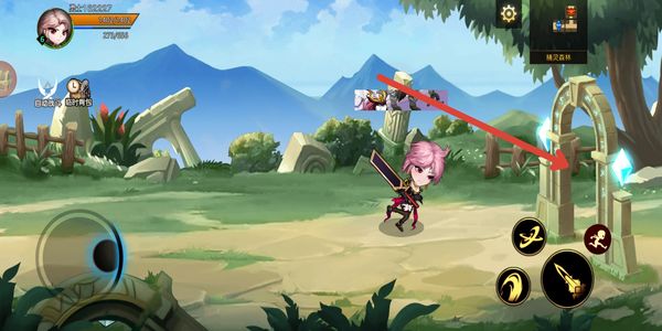 2、进入关卡场景后,移动角色靠近传送门,通过传送门进入对应的战斗区域,准备开启战斗挑战。