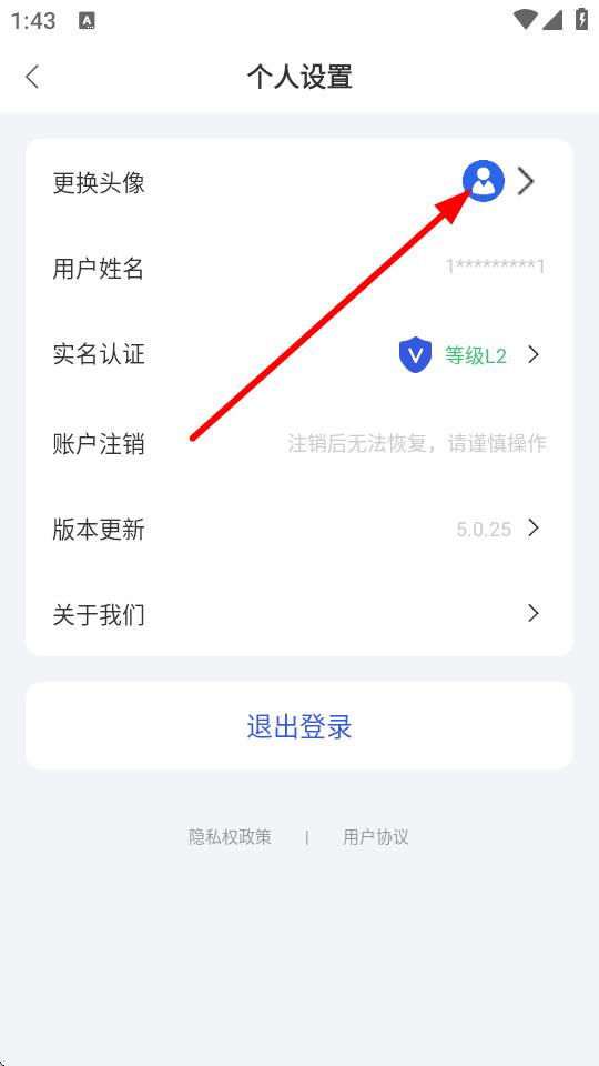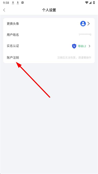 3、在个人设置页面,找到账户注销选项并点击,进入账户注销的验证页面。