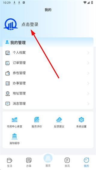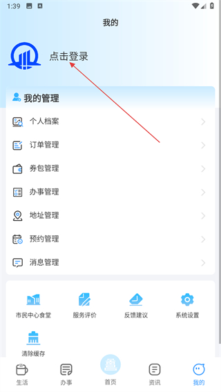 2、进入个人页面之后,找到上方点击登录区域并点击。