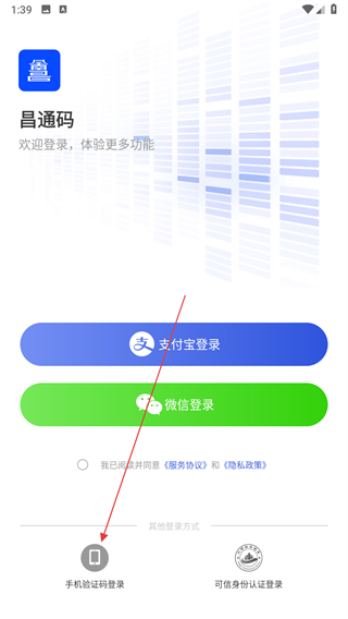 2、在登录页面点击手机验证码登录选项,进入手机号登录页面。