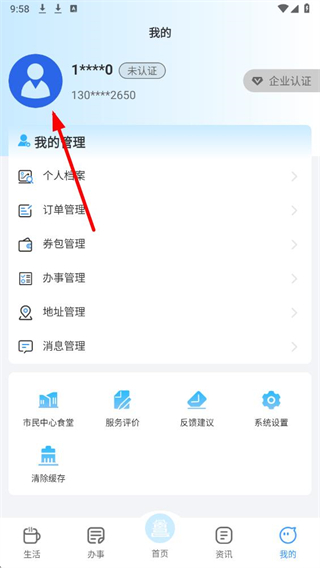 2、在个人中心页面,点击头像及信息区域进入个人设置界面。