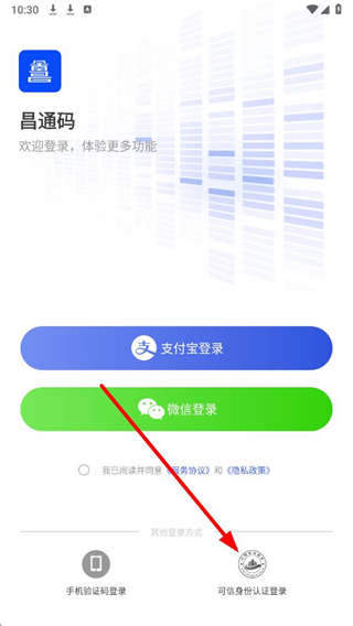 2、进入登录界面后,找到可信身份认证登录选项并点击,进入对应登录页面。