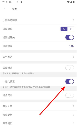 3、在设置页面中,即可找到个性化设置选项,点击可调整广告推送。