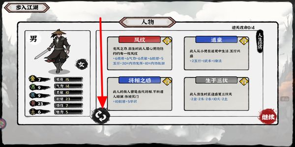 1、进入游戏后在剧情选择界面,挑选对应的选项开启角色的出生剧情,不同选择会影响后续的发展方向。