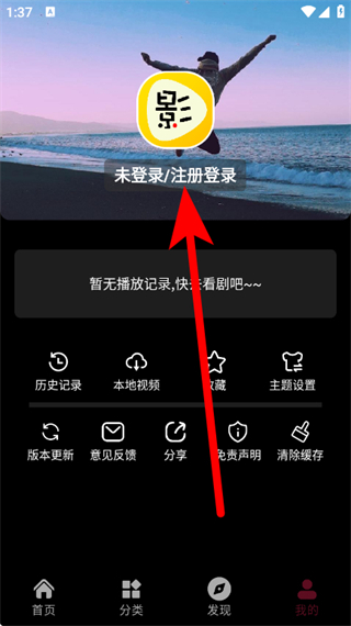 2、在个人页面,点击注册登录区域,进入登录界面。