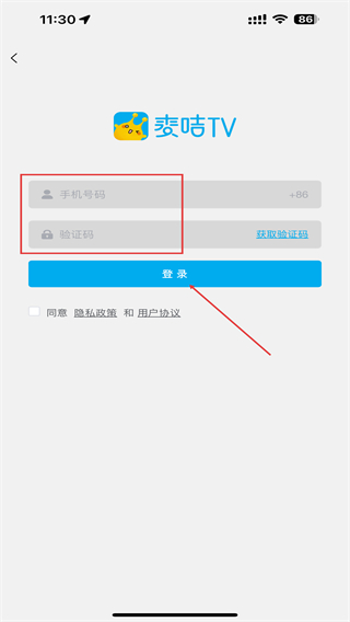3、在登录界面,输入手机号、验证码,点击登录即可。