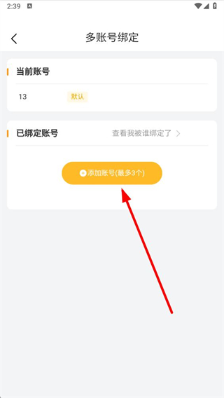 3、进入多账号绑定页面后,点击黄色的添加账号按钮。