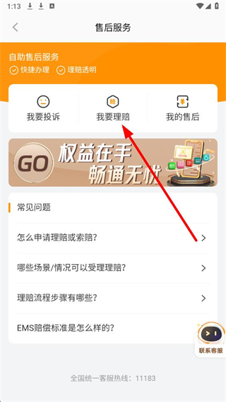 3、在售后服务页面中,选择我要理赔选项,进入理赔查询申请界面。