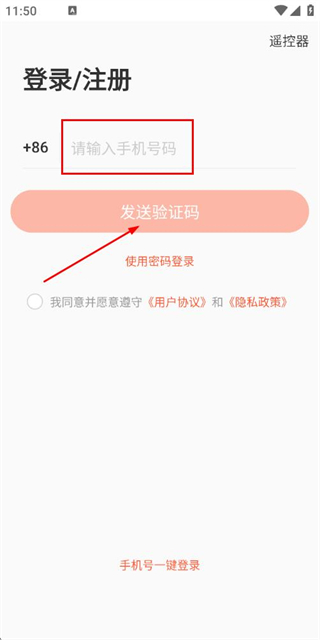2、在登录页面填写手机号,勾选协议后,点击发送验证码。